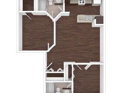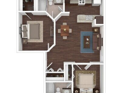 The two-bedroom Palm floor plan offers a private master suite with a walk-in closet, spacious living and dining area, and a fully-equipped kitchen with energy-efficient appliances.